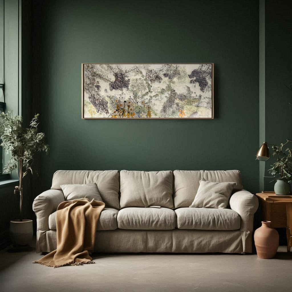 This work invites viewers into an interior landscape shaped by memory and observation. Botanical impressions serve as both structure and metaphor, suggesting the hidden, ever-growing “garden” of one’s inner world. Natural pigments and soft transitions give the impression of thoughts unfolding slowly, like foliage in shadowed light.