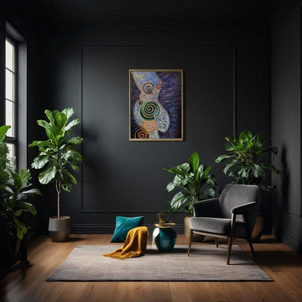 Kundalini is a journey through transformation, consciousness, and the cycle of death and rebirth. The goddess Kundalini rises with spirals of energy and power, yet grounded through years of preparation and understanding. She embodies the union of ethereal beauty and earthly roots, a reminder that true emergence comes from patience, inner work, and the balance between letting go and becoming.