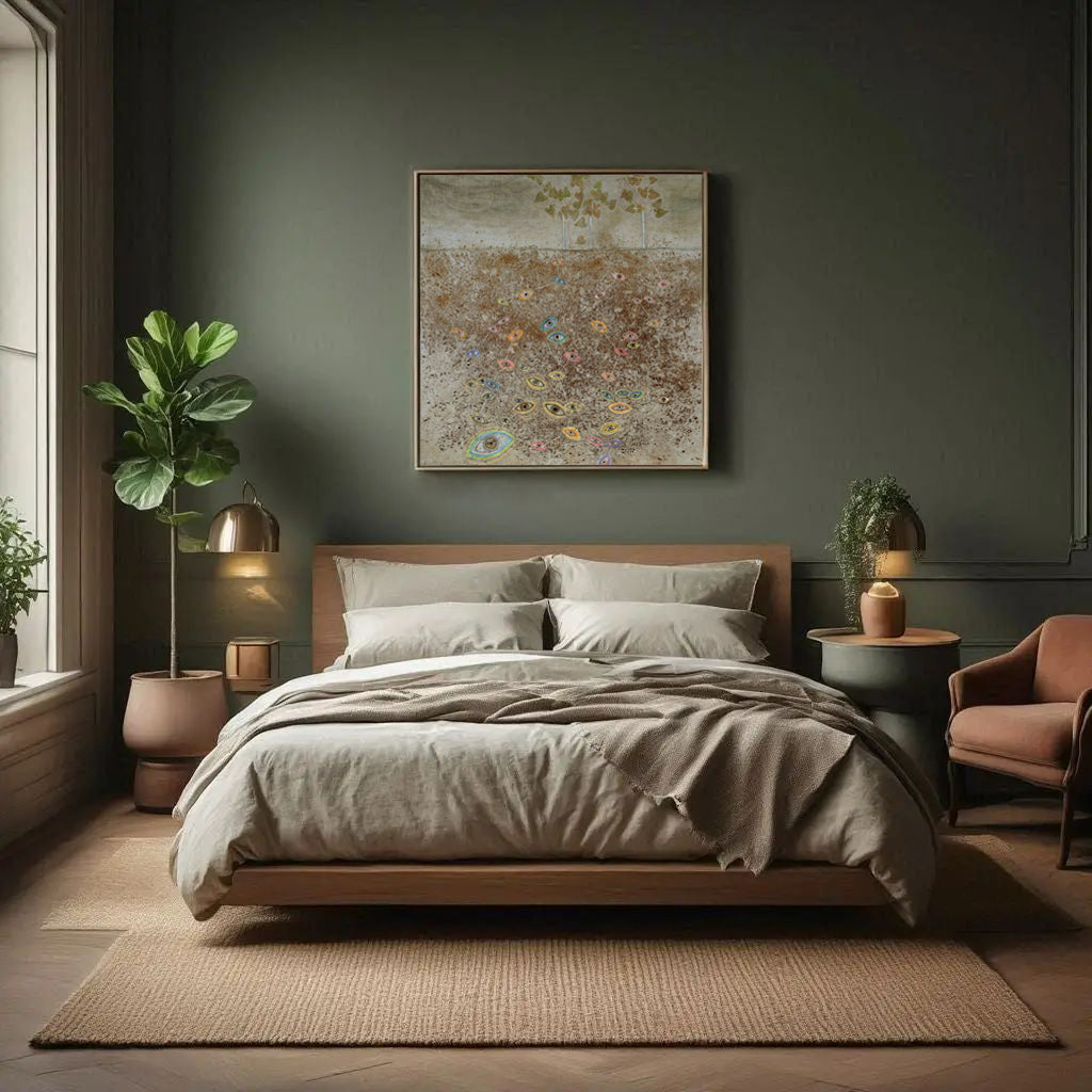 Seeds of Love reveals the hidden world beneath what we think we see. Inspired by the “wood wide web,” the painting uncovers the secret networks of connection that sustain life—roots, threads, and unseen pathways of support. What looks like botanical chaos at first slowly transforms into an underground universe where everything is linked, nourished, and held together.