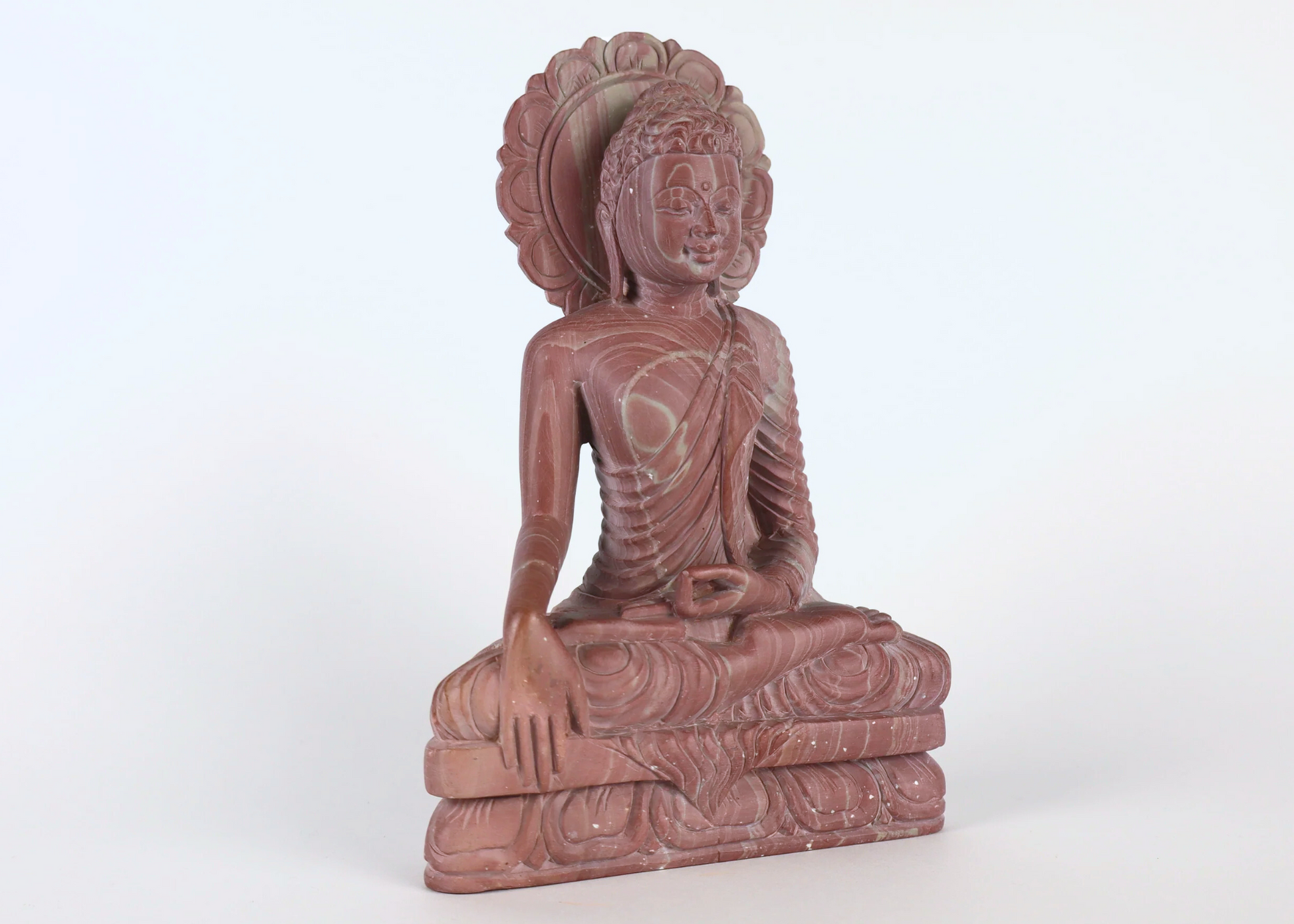 Mani born in 1965 , is originally from Mahabalipuramlocated in Tamil Nadu state, South India. Influenced by Gupta and Kushan art periods, the artist specialises on traditional Indian Gods and Godesses. His inspiration is often sourced from world famous historic temples like Khajuraho and Meenakshi. R. Mani uses traditional Indian materials such as Sandstone, Granite and Soft stone. Mani was brought up surrounded by art. His father, Dhruva Pratap was a well-known sculptor and maintained and restored the sculptures of the famous Konark Temple in South India, passing on his skills to his son. Holder of two awards from the President of India, he is especially well known for his Buddha sculptures. He imbues his Buddha faces with such serenity and a sense of blissfulness that it’s no surprise they are used by so many to assist in deep meditation in some of the leading meditation centres around the world.