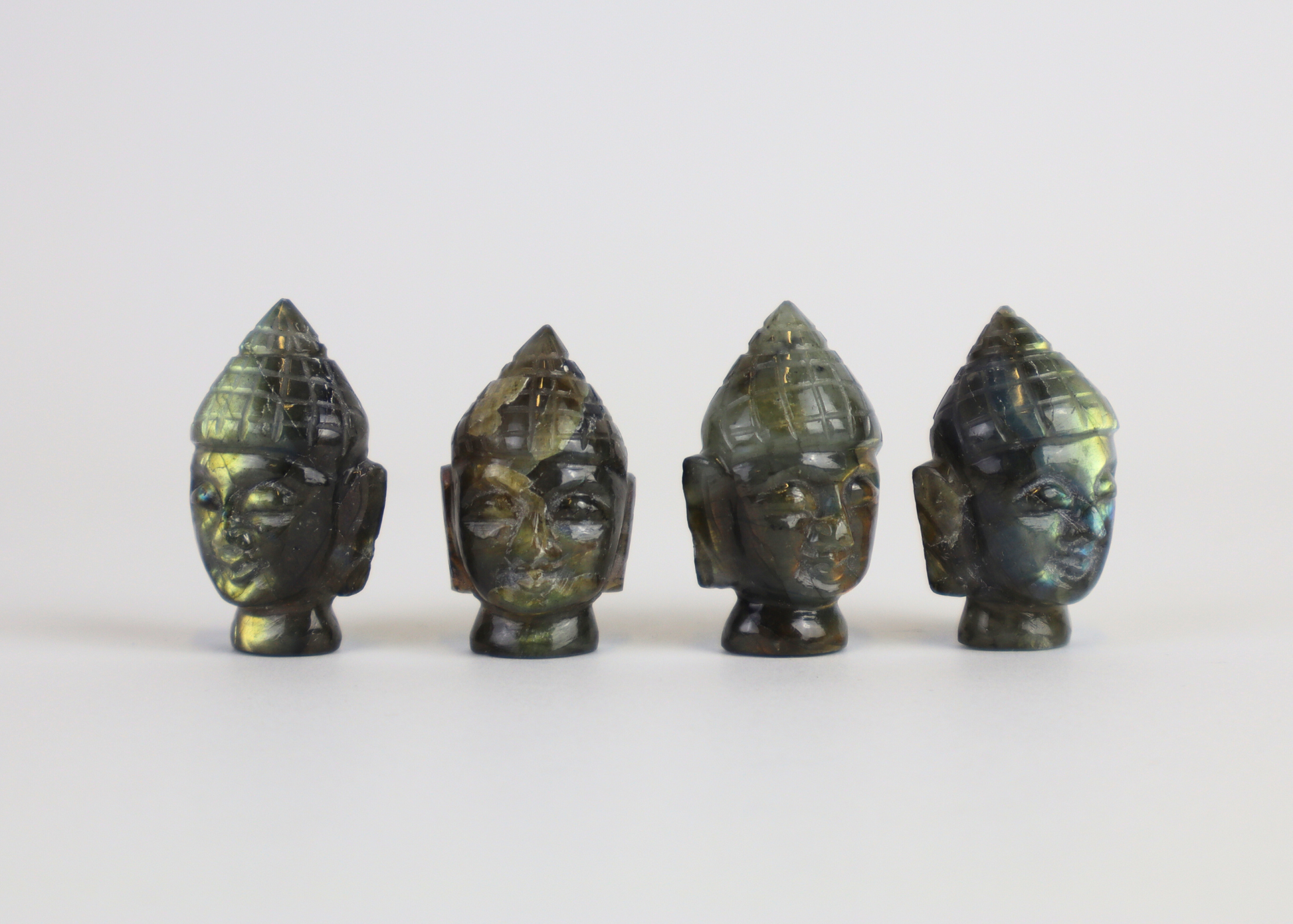 Elegantly carved from iridescent labradorite, these pocket-sized Buddha Heads embody inner stillness, awakened consciousness, and spiritual transformation. The serene expression of the Buddha represents enlightenment, mindfulness, and the deep wisdom that arises from quiet reflection. It serves as a gentle reminder to return to presence and cultivate peace within.