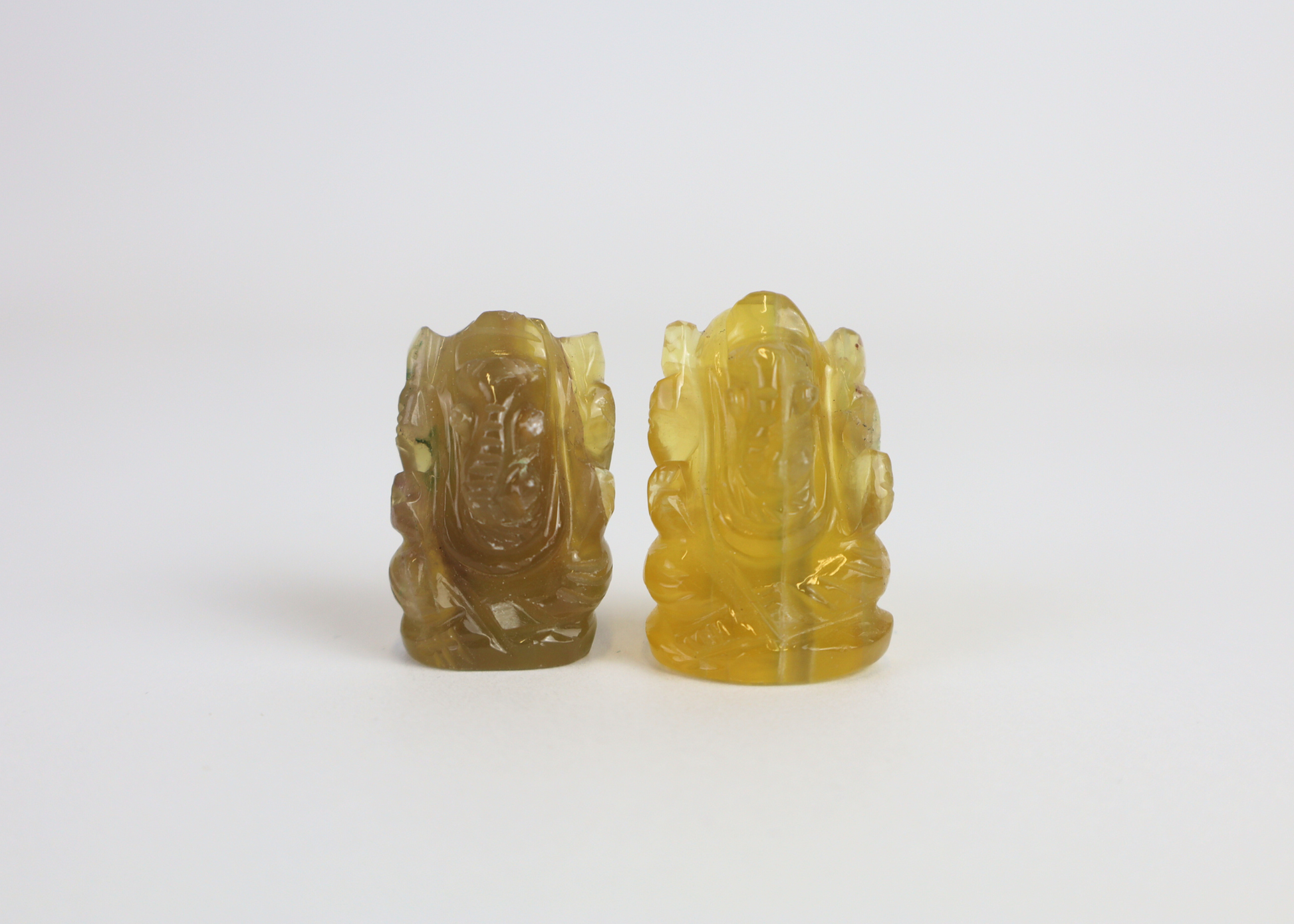 Delicately carved from radiant rainbow fluorite, this Tiny Ganesha embodies the energy of wisdom, clarity, and the removal of obstacles. Ganesha, the beloved elephant-headed deity of Hindu tradition, is revered as the Lord of Beginnings, the Remover of Obstacles, and the guardian of knowledge and success. His presence invites protection, focus, and the graceful unfolding of new paths.