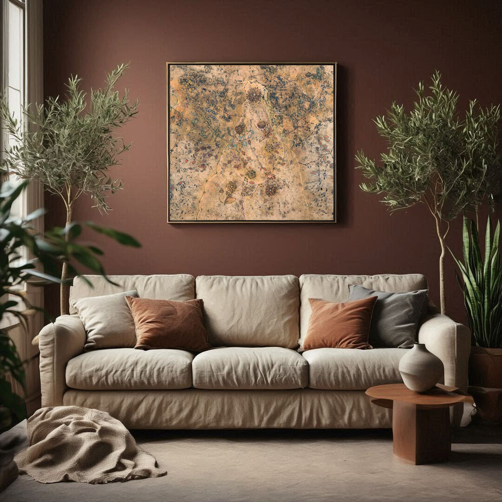 “Venus” is an eco-printed and eco-dyed painting, subtly enhanced with soft pastels to preserve the natural beauty and textural richness of the botanicals. Created through a multi-step, time-intensive process, it retains the quiet elegance and organic depth that only nature can reveal.